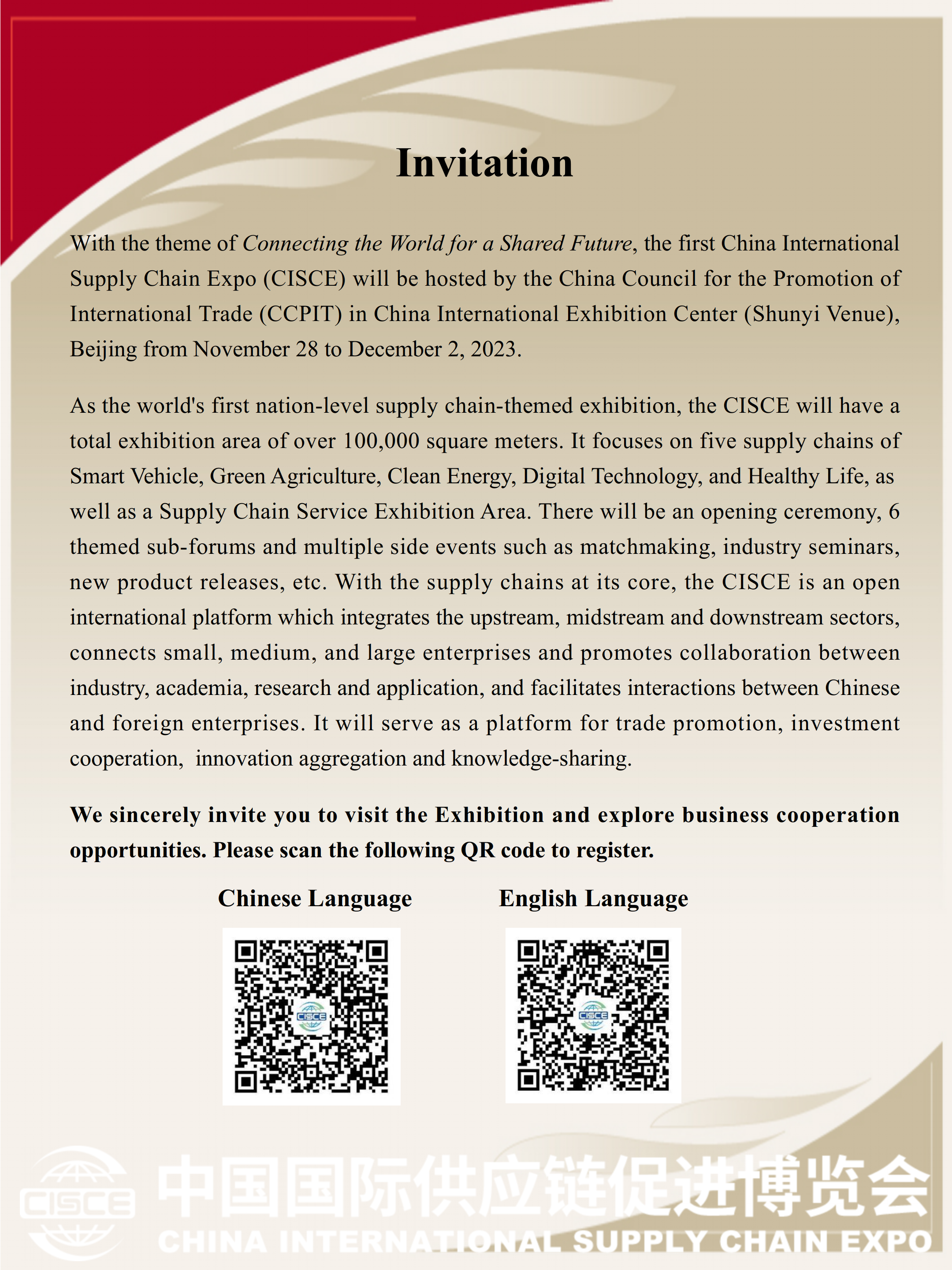2023年11月28日至12月2日,由中国贸促会主办,中展集团承办的首届中国国际供应链促进博览会(以下简称首届链博会)将在北京中国国际展览中心(顺义馆)举办。