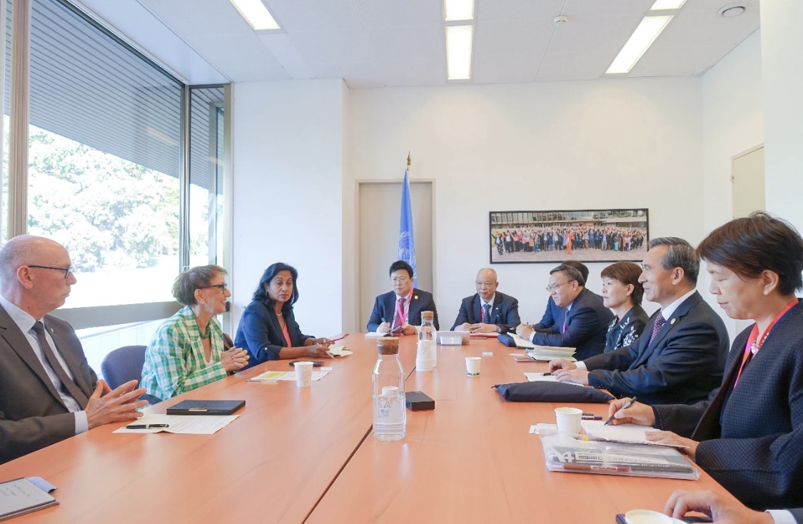 9月10日,中国贸促会会长任鸿斌率中国企业家代表团访问瑞士期间,在日内瓦分别会见世界贸易组织总干事奥孔乔-伊维拉、联合国贸发会议秘书长格林斯潘和国际贸易中心执行主任科克-汉密尔顿,积极宣介中国共产党二十届三中全会精神,并就支持多边主义、维护多边贸易体制、维护全球产业链供应链稳定畅通、加强机构间务实合作、推动落实中非“十大伙伴行动”等议题进行深入交流。