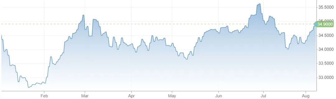 泰铢对美元汇率走势